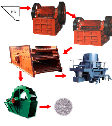 沙石生產(chǎn)線,砂石生產(chǎn)線,砂石生產(chǎn)線設(shè)備,砂石線,砂石生產(chǎn)設(shè)備基本流程:大塊石料經(jīng)料倉由振動(dòng)給料機(jī)均勻地送進(jìn)鄂式破碎機(jī)進(jìn)行粗碎,粗碎后的石料由皮帶輸送機(jī)送到反擊式破碎機(jī)進(jìn)行進(jìn)一步破碎;不滿足粒度要求的石子由皮帶輸送機(jī)返料送到反擊式破碎機(jī)進(jìn)行再次破碎,形成閉路多次循環(huán)。細(xì)碎后的石料由皮帶輸送機(jī)送進(jìn)振動(dòng)篩進(jìn)行篩分,篩分出幾種不同規(guī)格的石子,滿足粒度要求的石子由成品皮帶輸送機(jī)送往成品料堆;成品粒度可按照用戶的需求進(jìn)行組合和分級(jí),為保護(hù)環(huán)境,可配備輔助的除塵設(shè)備。