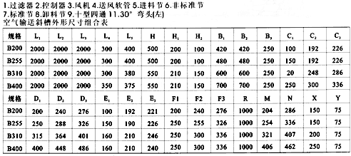 空氣斜槽輸送機由數(shù)個薄鋼制成的槽子聯(lián)接組成,并沿其輸送方向布置成一定的斜度??諝廨斔托辈鄄垠w沿著輸送方向安裝成向下傾斜4%~6%的斜度。